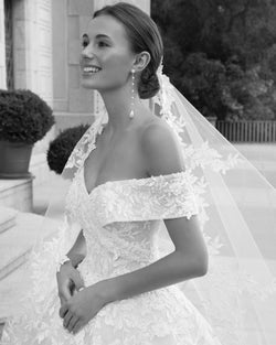 Soft tulle and beadwork bridal veil with comb and pearls.